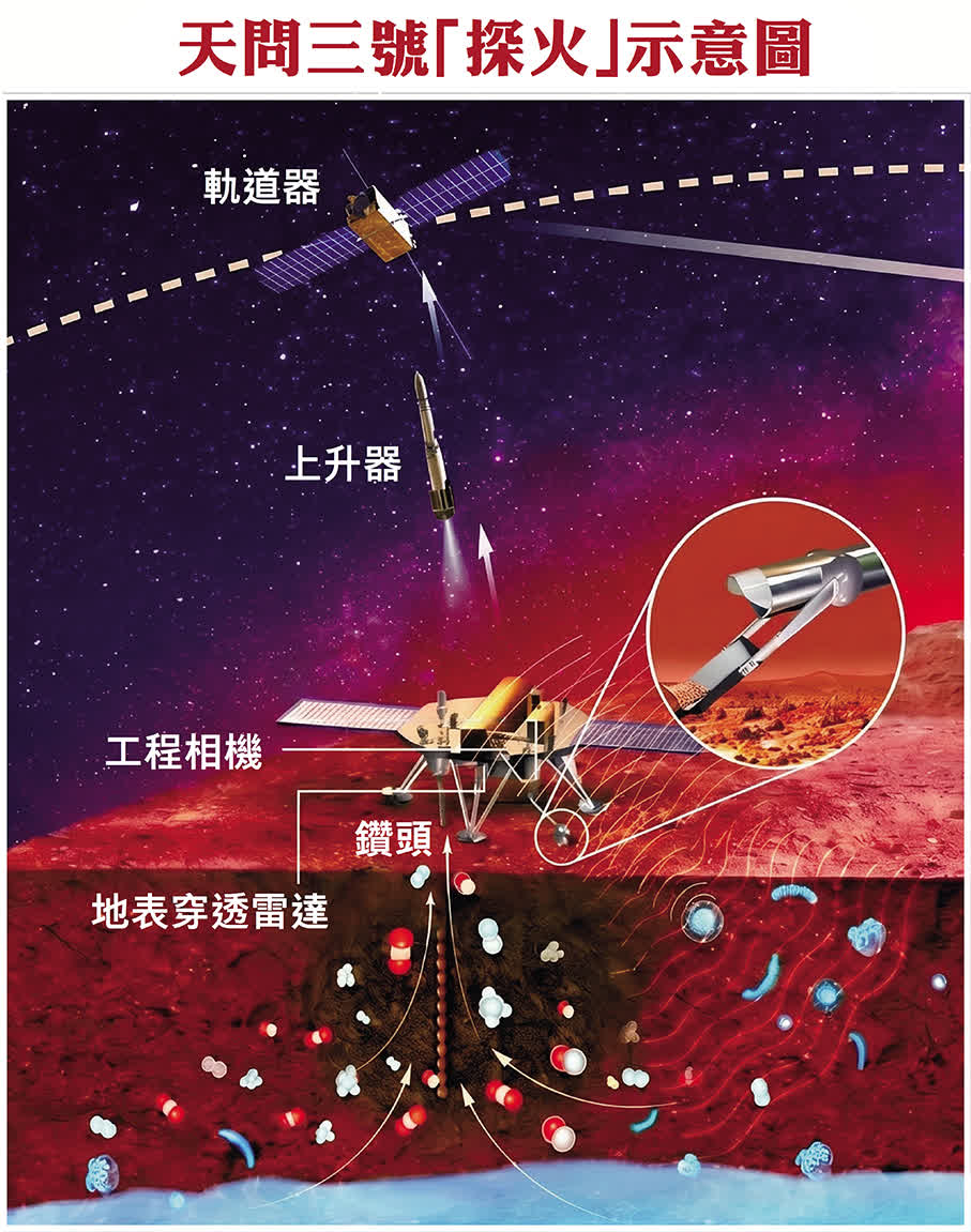 香港文匯報訊(記者 劉凝哲、史柳藝)中國行星探測工程天問三號任務,計劃在2031年前後攜帶火星樣品返回地球。國家航天局24日在「中國航天日」主場活動啟動儀式上發布天問三號五大合作項目遴選結果,香港大學牽頭研製的「火星地物高光譜成像儀」及香港中文大學牽頭研製的「激光外差光譜儀」分別入選。