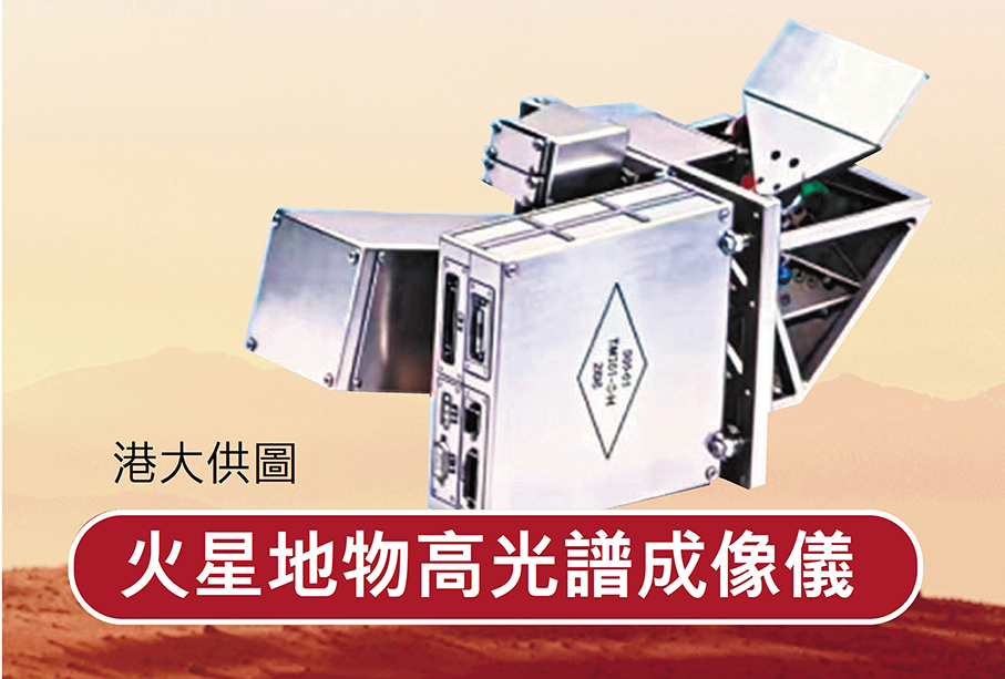 港大向香港文匯報介紹,「火星地物高光譜成像儀」項目由港大地球與行星科學系教授李一良領導,主要合作機構包括浙江大學和中國科學院長春光學精密機械與物理研究所,該儀器將承擔關鍵探測任務,包括探尋火星生命痕跡、含水礦物及資源普查等。