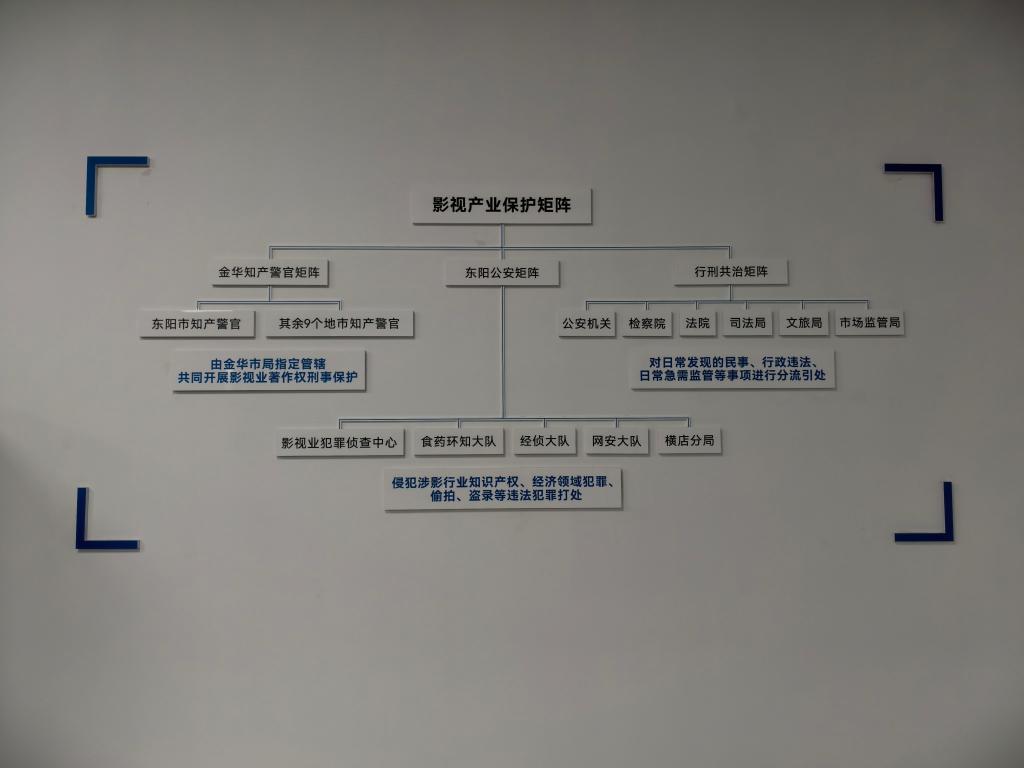 2026年4月17日,浙江省金华市横店影视业法治中心展示的影视产业保护矩阵。 新华社记者李明辉 摄