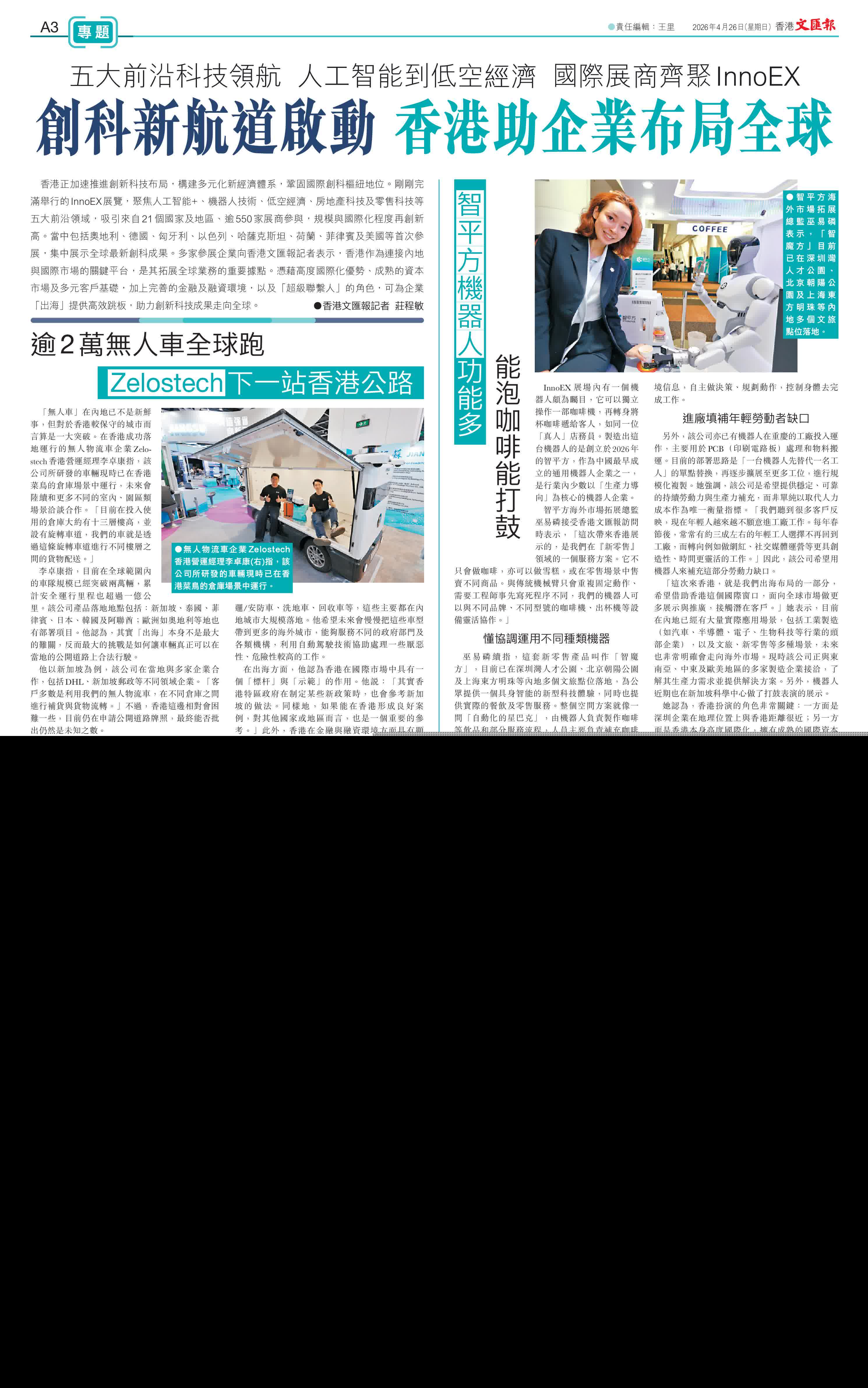 (香港文匯報記者 莊程敏)香港正加速推進創新科技布局,構建多元化新經濟體系,鞏固國際創科樞紐地位。剛剛完滿舉行的InnoEX展覽,聚焦人工智能+、機器人技術、低空經濟、房地產科技及零售科技等五大前沿領域,吸引來自21個國家及地區、逾550家展商參與,規模與國際化程度再創新高。當中包括奧地利、德國、匈牙利、以色列、哈薩克斯坦、荷蘭、菲律賓及美國等首次參展,集中展示全球最新創科成果。多家參展企業向香港文匯報記者表示,香港作為連接內地與國際市場的關鍵平台,是其拓展全球業務的重要據點。憑藉高度國際化優勢、成熟的資本市場及多元客戶基礎,加上完善的金融及融資環境,以及「超級聯繫人」的角色,可為企業「出海」提供高效跳板,助力創新科技成果走向全球。