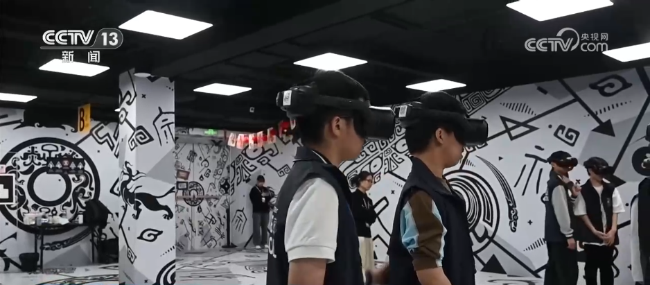 在秦始皇帝陵博物院外的全真XR体验空间,记者正在体验一场进入秦陵地宫的奇幻冒险。通过XR、数字空间再造、人工智能等前沿技术,体验者可以“亲手推开”虚拟地宫大门,这也吸引了不少研学团队前来体验。