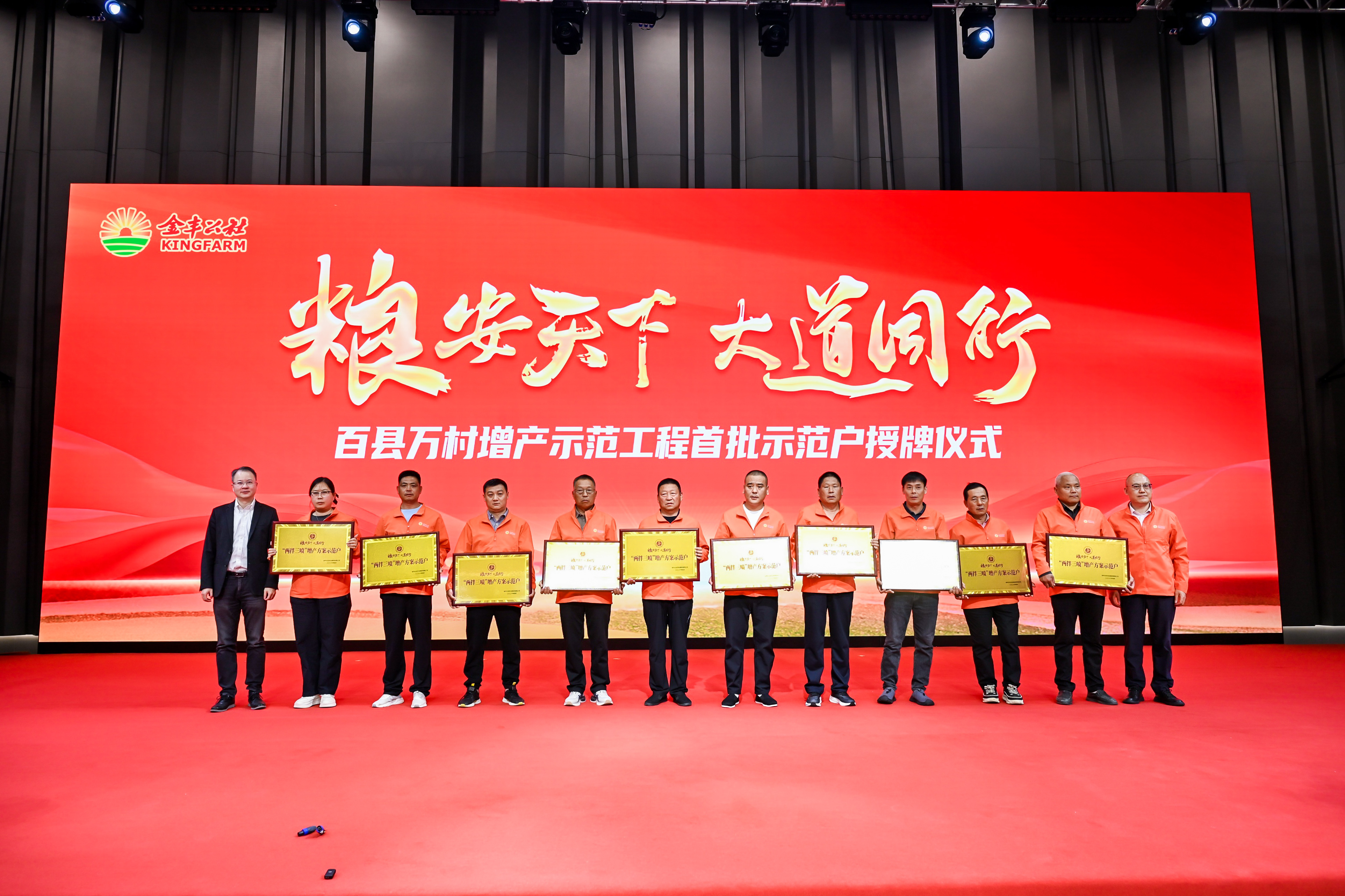 为发挥先锋带动作用,活动现场为全国首批百县万村增产示范户举行了授牌仪式,来自全国各地的10位优秀种植户获授牌匾。他们作为技术先行者,将扎根田间地头,以真实种植、实打实测验证技术成效。