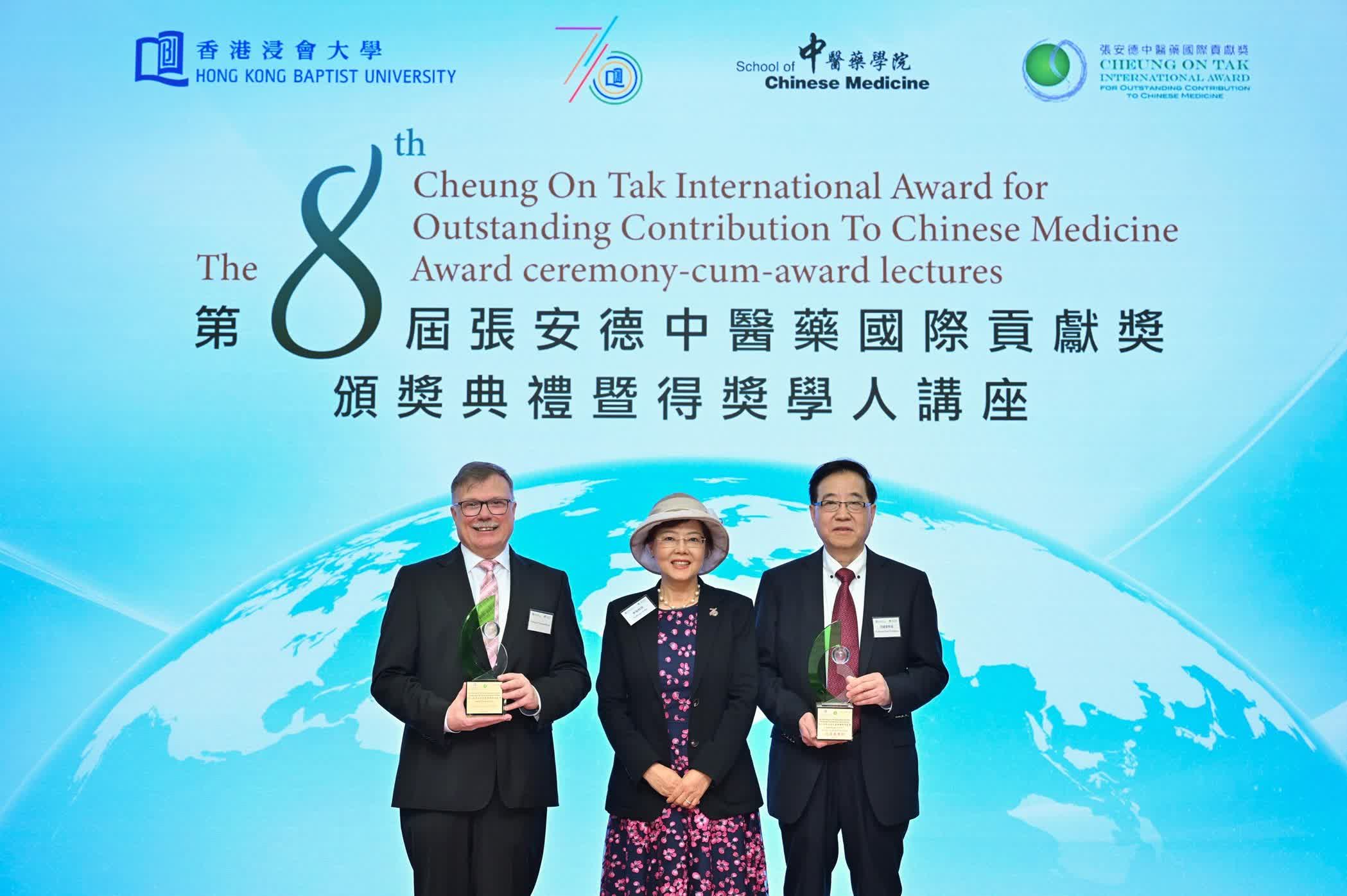 香港文匯報訊(記者 楊梓穎)香港浸會大學(浸大)中醫藥學院主辦的第八屆「張安德中醫藥國際貢獻獎」,於4月23日舉行頒獎典禮暨得獎學人講座。兩位全球頂尖學者——德國美因茨約翰內斯—古騰堡大學藥學及生物化學研究所所長 Thomas Efferth,以及國際標準化組織傳統醫藥技術委員會(ISO/TC 249)主席沈遠東——同獲殊榮,以表彰他們在推動中醫藥現代化及全球發展方面的卓越貢獻。
