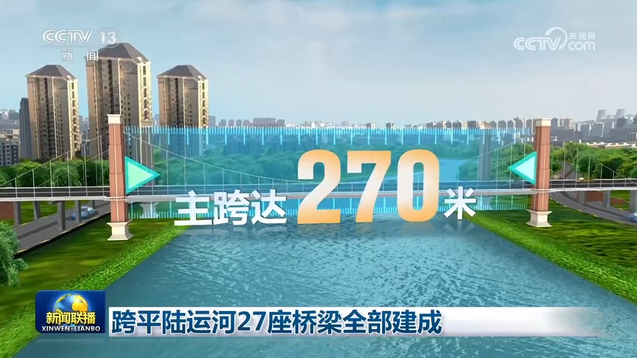 央视网消息(新闻联播):4月28日上午,平陆运河配套工程——子材大桥通车,标志着跨平陆运河27座桥梁全部建成。平陆运河将于今年9月建成通航。