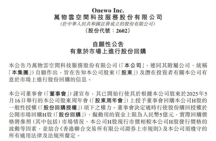 万物云再启5亿回购,为何规模缩水?