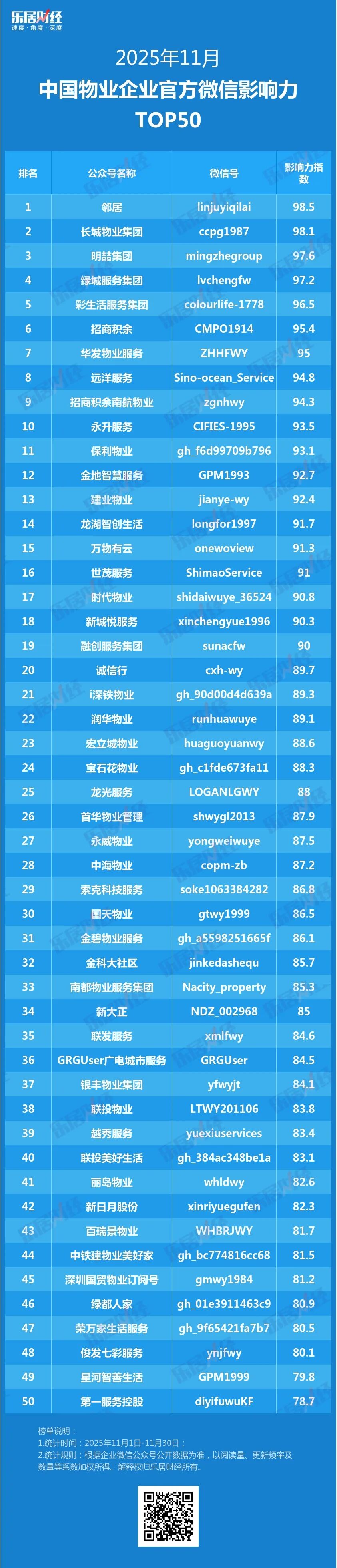2025年11月中国品牌物企官方微信影响力TOP50