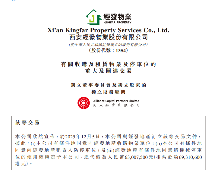 市值仅2.5亿港元,经发物业仍拟6300万收购关联方资产