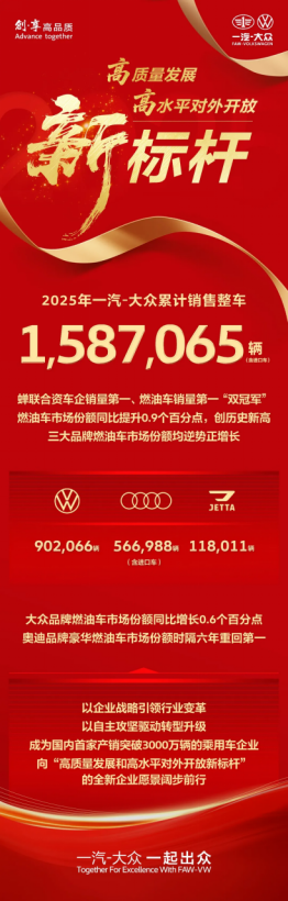 跨越三千万辆新程,一汽-大众2025年业绩“双冠”领跑