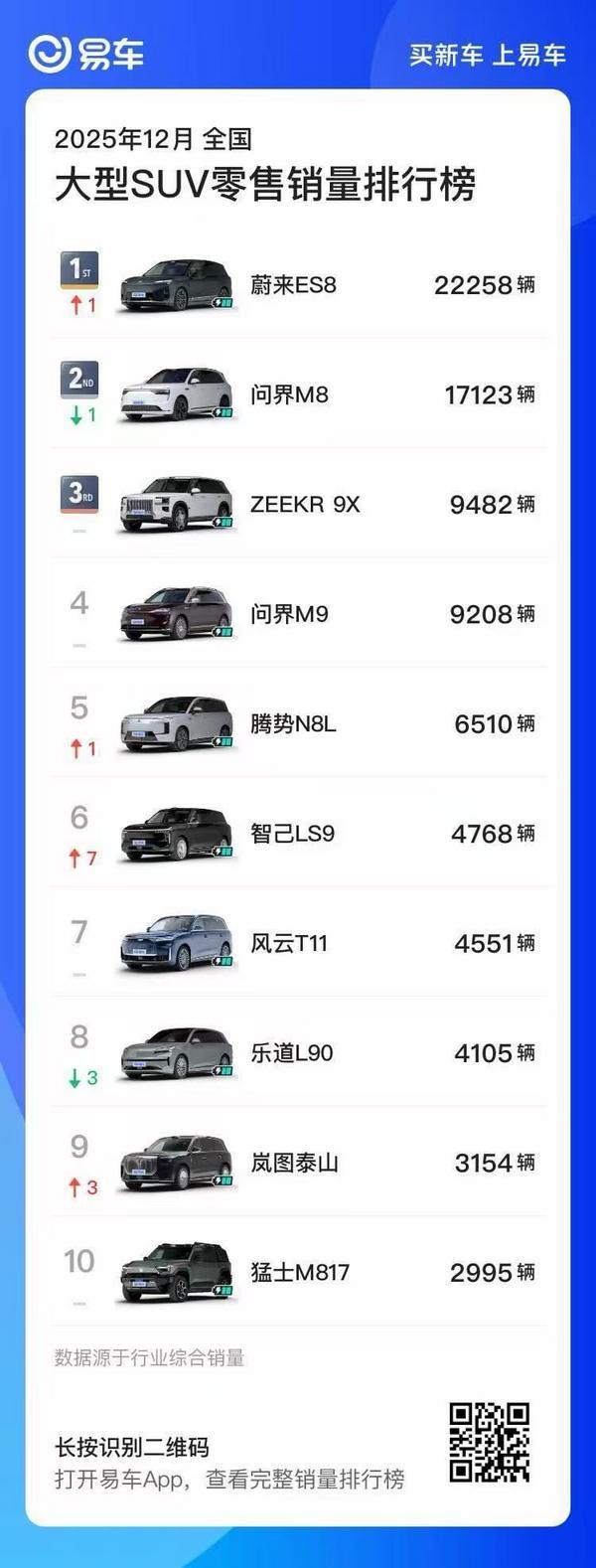 12 月零售销量 22,258 台,全新 ES8 斩获大型 SUV 销量冠军