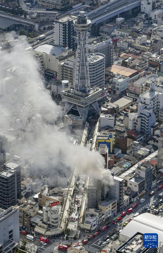 日本大阪地标建筑通天阁附近发生火灾