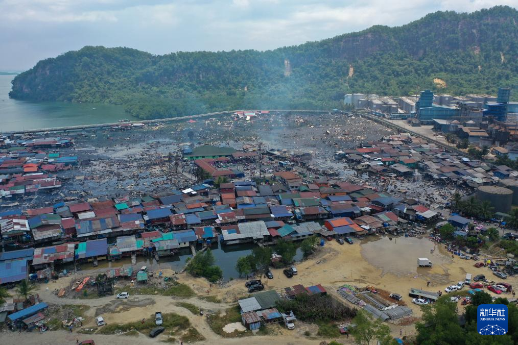 马来西亚一水上村庄失火 约200间房屋被毁
