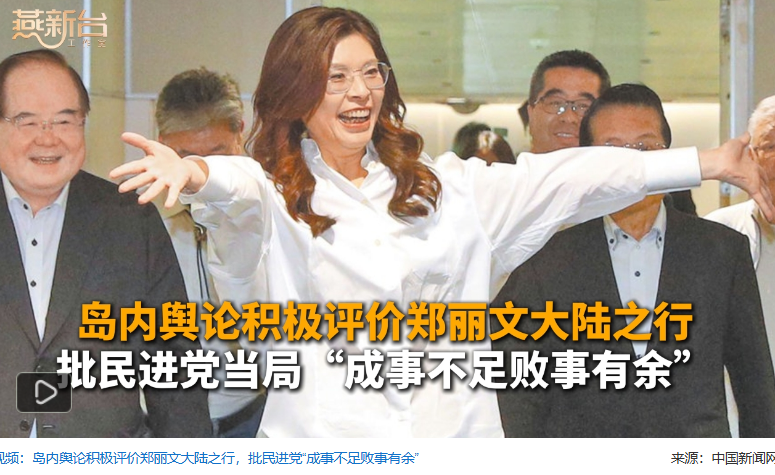 岛内积极评价郑丽文大陆之行 批赖当局“成事不足、败事有余”