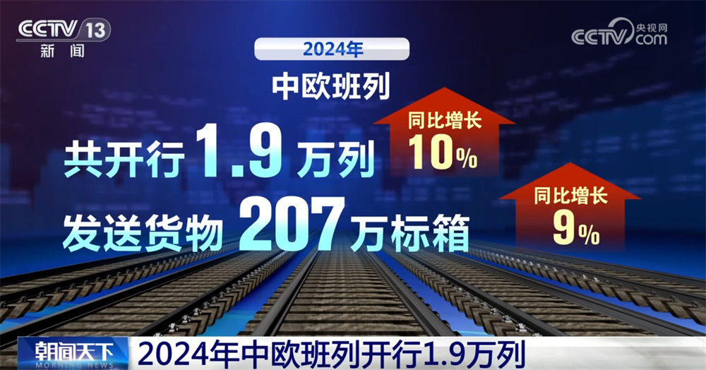 The reporter learned from the China Railway Group that in 2024, a total of 19,000 China-Europe freight trains were launched and 2.07 million standard boxes of goods were sent, an increase of 10% and 9% year-on-year respectively. Up to now, the China-Europe freight train has reached 227 cities in 25 European countries and more than 100 cities in 11 Asian countries.