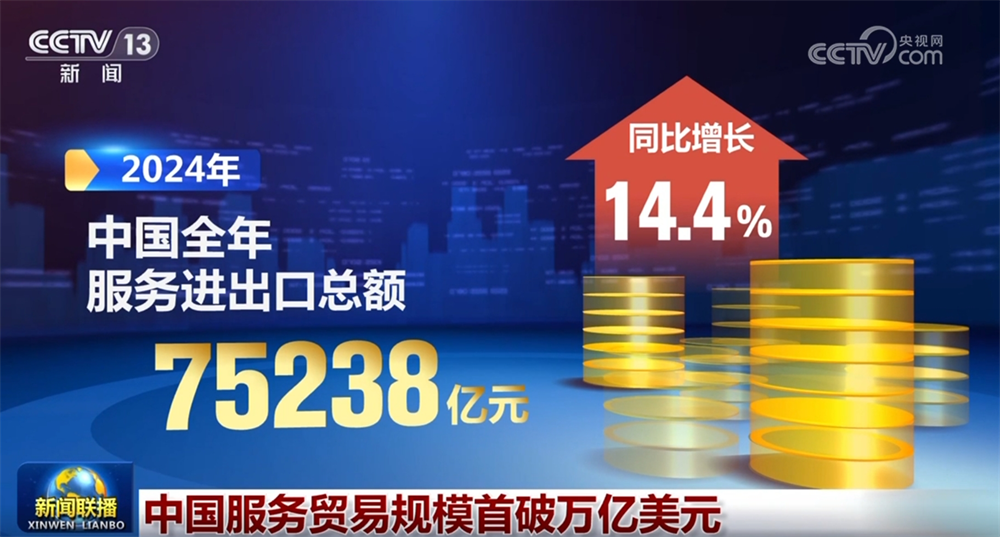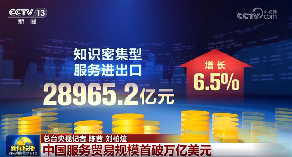 Data from the Ministry of Commerce shows that in 2024, my country's total service import and export volume exceeded 1 trillion US dollars for the first time, setting a record high.