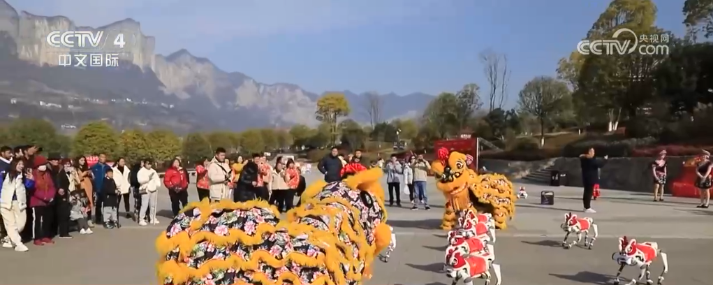 During the Spring Festival, the Enshi Grand Canyon Scenic Area in Hubei Province was decorated with lights and carved, and the robot dog performance and lion dance were happily interacting, attracting many tourists to participate in the experience. The two majestic lions danced lively, and a group of playful and cute robot dogs danced with the lions. They sometimes stepped neatly, sometimes twisted their bodies, and shook hands with tourists and interacted intimately.