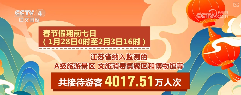 Seven days before the Spring Festival holiday, Jiangsu Province included A-level tourist attractions, cultural and tourism consumption clusters and museums included in the monitoring received a total of 40.1751 million tourists.
