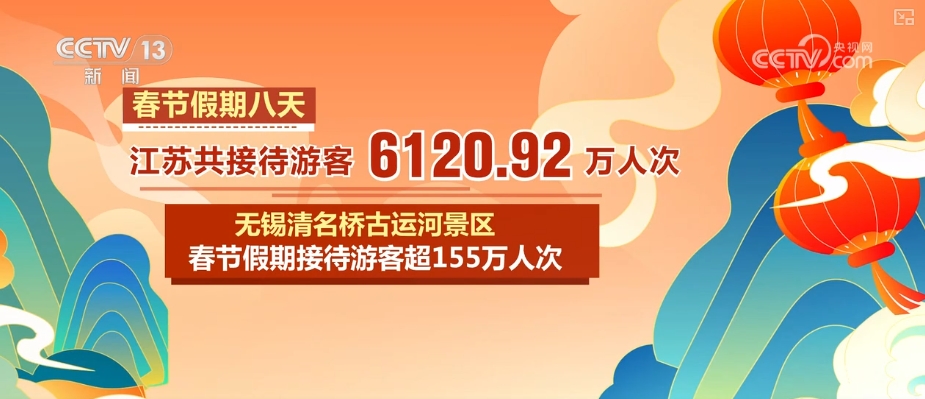 Wuxi is one of the four sub-venues of the General Station Spring Festival Gala. The Qingmingqiao Ancient Canal Scenic Area, where the main stage is located, has become the "top stream" of this holiday. It received more than 1.55 million tourists during the Spring Festival holiday. Data shows that during the Spring Festival, Wuxi's search popularity increased by 185% year-on-year, and the number of tourists received increased by more than 30% year-on-year. Inner Mongolia has received more than 30 million tourists