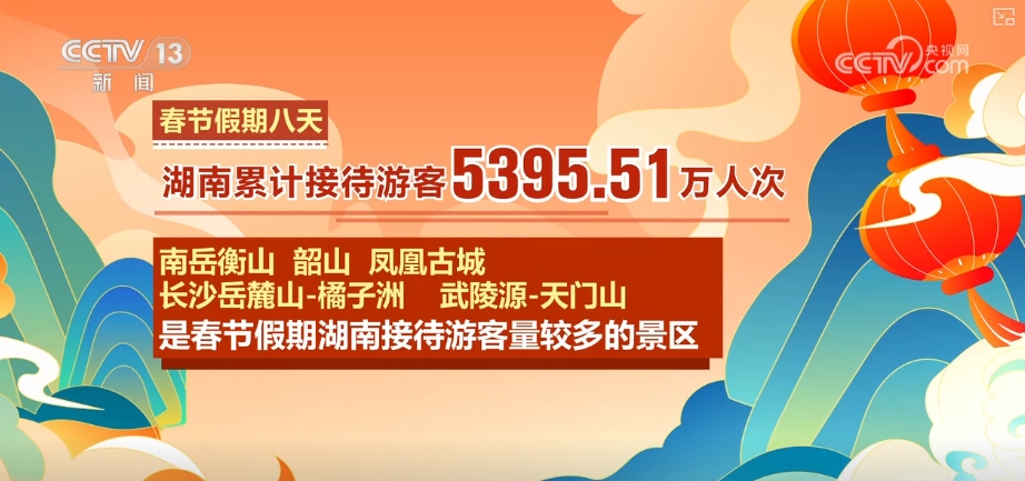 During the 8-day Spring Festival holiday, Hunan Province has received a total of 53.9551 million tourists.