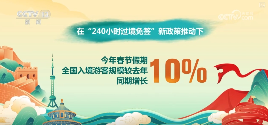 Powered by the new policy of "240-hour transit visa-free", during the 2025 Spring Festival holiday, the number of inbound tourists nationwide increased by 10% compared with the same period in 2024.