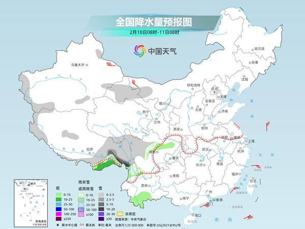 Tomorrow, there will be light to moderate snow or sleet in western Inner Mongolia, western Gansu, eastern Tibet, western Sichuan Plateau, northwestern Yunnan, etc., among which there will be heavy to blizzards in some areas of southeastern Tibet. Light to moderate rain will occur in some areas such as southeastern Tibet and southern Yunnan.