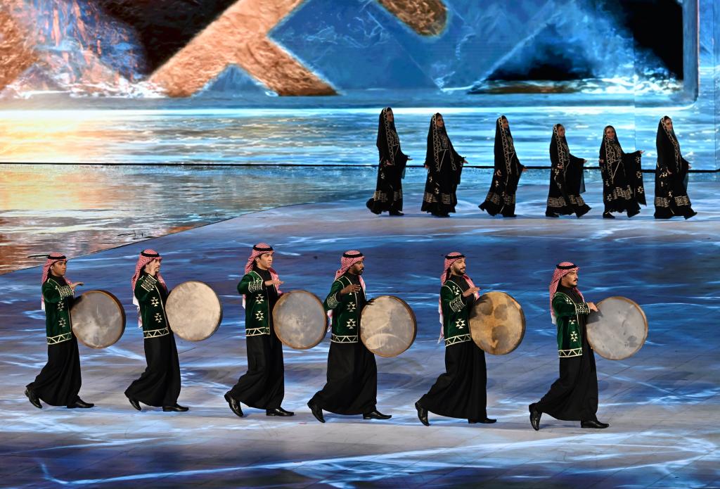 As the host city of the next Asian Winter Festival, the literary and artistic performances from Saudi Arabia's Future New City are graceful, with cheerful drum beats, and full of a strong West Asian style. In an instant, the entire stage turned into an ice and snow sports field, and the athletes passing by light and shadow called for the next appointment, setting off a new climax on the scene.