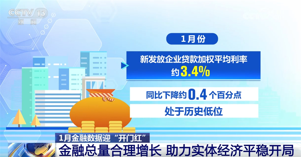 The weighted average interest rate for newly issued corporate loans in January was about 3.4%, a year-on-year decrease of about 0.4 percentage points, at a historical low.