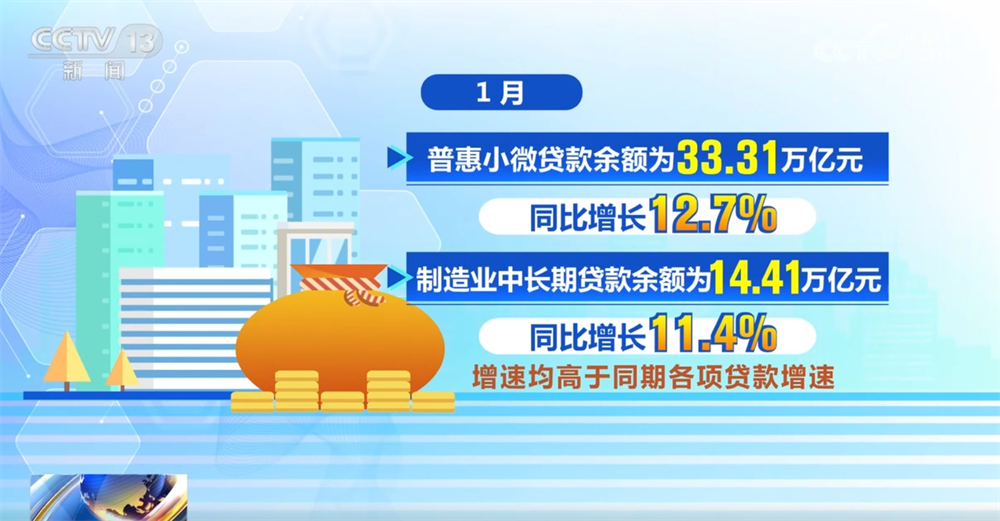 In January, the balance of inclusive small and micro loans was 33.31 trillion yuan, a year-on-year increase of 12.7%; the balance of medium- and long-term loans in the manufacturing industry was 14.41 trillion yuan, a year-on-year increase of 11.4%, both higher than the growth rate of various loans in the same period. The credit structure continues to be optimized, providing strong support for the transformation and upgrading of the real economy and high-quality development.