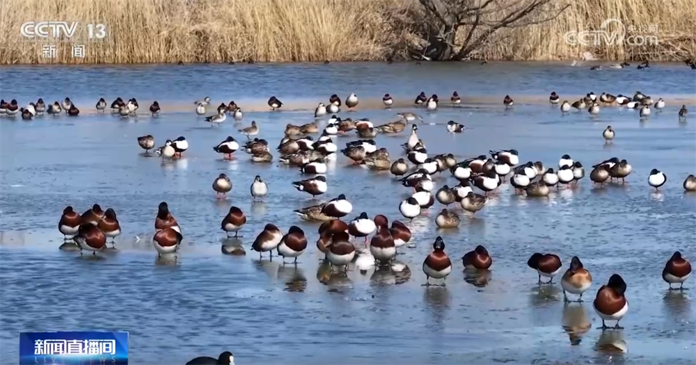 In the past two days, as the weather gets warmer, in Hohhot, Inner Mongolia, the Hailiu Reservoir in Tumote Left Banner welcomes migratory birds returning from the north, and thousands of migratory birds such as red ducks, mallards, swans gather here. They either play and forage on the water or soar freely in the air, adding vitality to the frozen reservoir in early spring.