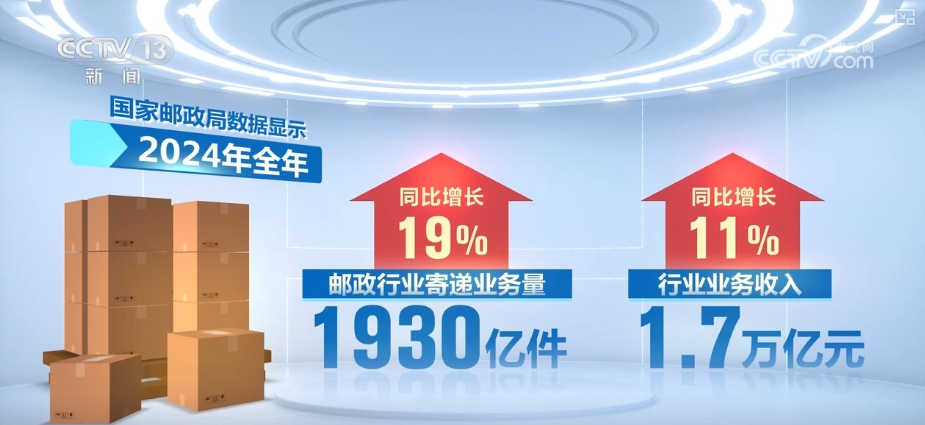 CCTV News: The reporter learned from the State Post Bureau on January 8 that in 2024, the annual postal industry's delivery business volume and industry business revenue reached 193 billion pieces and 1.7 trillion yuan respectively, and the express delivery business volume has ranked first in the world for 11 consecutive years. The State Post Bureau expects that the postal industry will continue to maintain a steady upward trend in 2025.