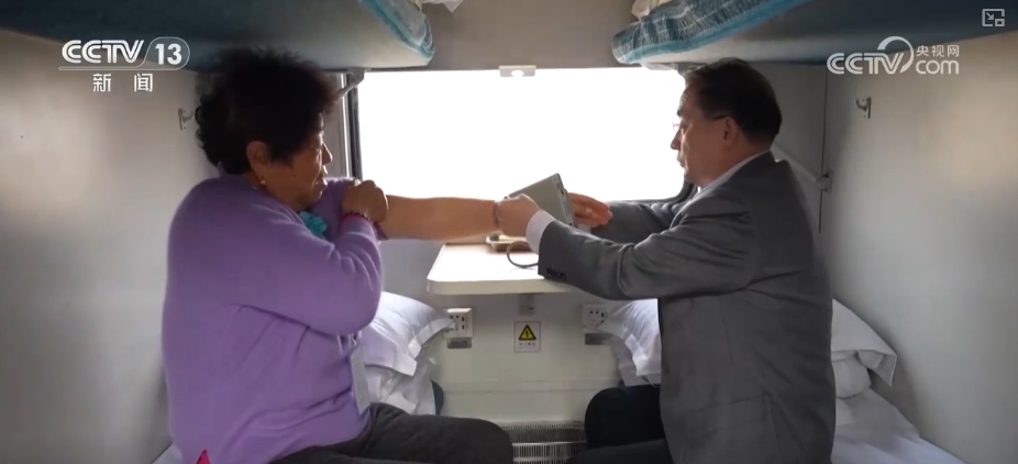 In addition to equipping key elderly passengers with emergency call locators, the Silver Hair Special Train has also introduced AI intelligent travel monitoring equipment suitable for aging, and two professional doctors have arranged to inspect the car throughout the car to provide health management services for the elderly at any time.