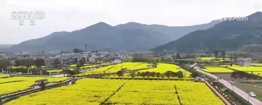 In March, a large area of ​​rape flowers in Anyi Ancient Village, Nanchang, Jiangxi Province, reflecting the green mountains and valleys and villages, creating a beautiful rural picture. Tourists shuttle through it, strolling leisurely, taking photos as souvenirs, and enjoying the beautiful spring scenery.