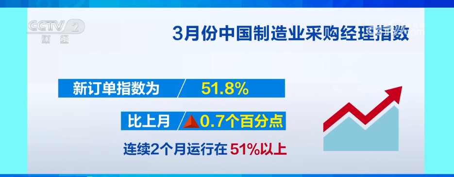 CCTV News: Data released by the National Bureau of Statistics and the China Federation of Logistics and Procurement on March 31 showed that China's manufacturing purchasing managers' index (PMI) in March was 50.5%, up 0.3 percentage points from the previous month, and the prosperity of my country's manufacturing industry continued to rebound.