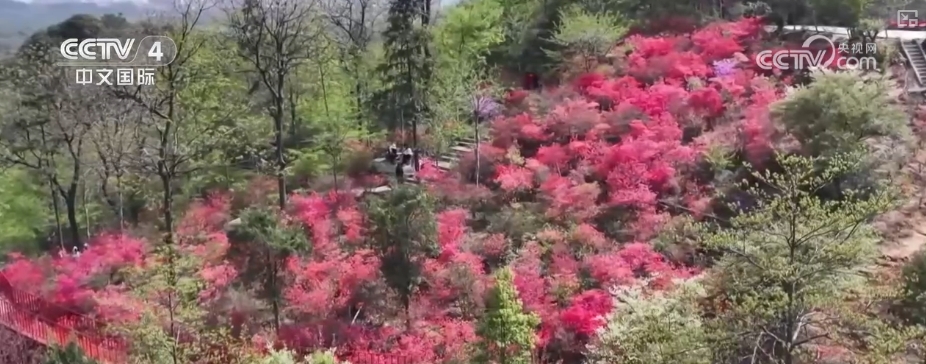 In Xianggong Mountain, Xixia Town, Nanchang, Jiangxi, more than 50,000 azaleas are ushering in their peak flowering period. The azaleas everywhere in the mountains are "burning" beautiful among the mountains. Visitors wander in the sea of flowers and raise their cameras to freeze the beautiful moments of spring.