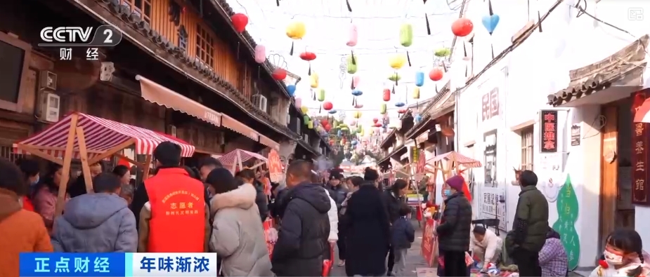 As the Spring Festival approaches, the New Year atmosphere in the ancient village market is getting stronger and stronger. In Shanxia Village, Longshan Town, Cixi City, Zhejiang Province, the ancient street is crowded and bustling.