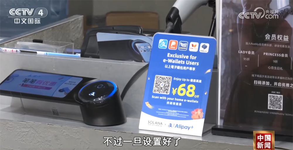 Walking in the business district, foreigners coming to shop can be seen everywhere, and mobile payment guides are posted or placed in stores.
