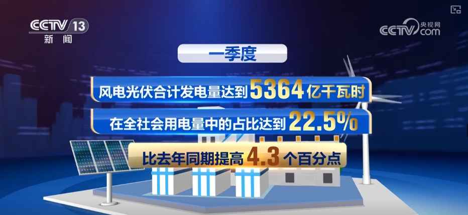 In terms of power generation, in the first quarter, the total power generation of wind power photovoltaics reached 536.4 billion kilowatt-hours, accounting for 22.5% of the total electricity consumption in the whole society, an increase of 4.3 percentage points over the same period in 2024. my country's green development is stable and improving in the first quarter of 2025