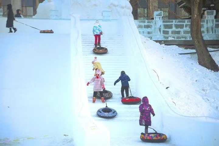Because there are various free slides in the parks on both sides of the Songhua River and the city. Even some wild slopes have become a good place to enjoy ice and snow sports