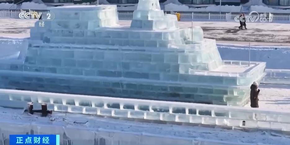 Recently, the ice sculpture landscape "Ice and Snow Liaoning Ship" unveiled on the ice surface of Songhua River, Harbin, Heilongjiang, attracting many tourists to check in and visit.