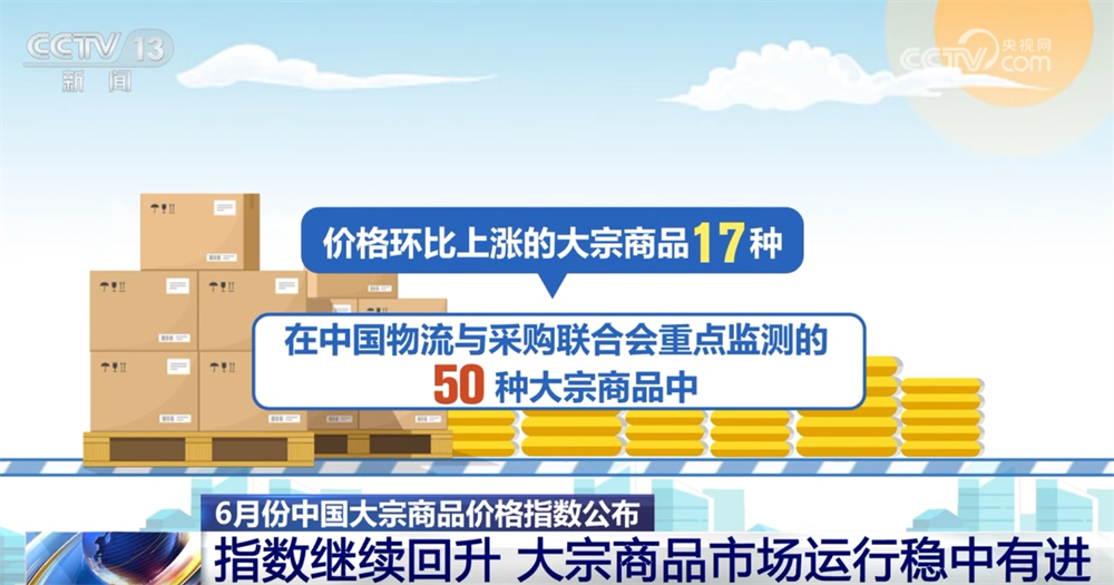 China's commodity price index in June was 110.8 points, up 0.5% month-on-month. Among the 50 commodities that the China Federation of Logistics and Procurement focused on monitoring, 17 commodities had increased month-on-month.