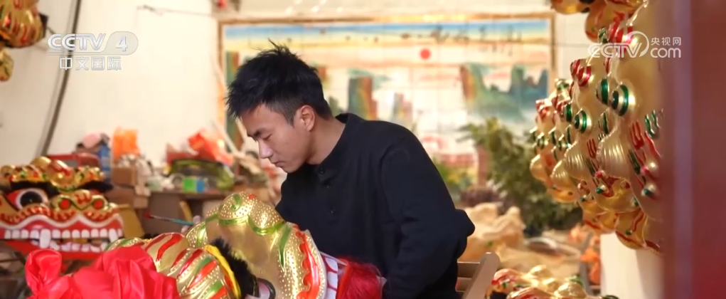 In the courtyard, Huo Yunlong, who will turn 25 this year, is placing colors for the lion dancers. After graduating from school, he took over the production of traditional lion dance from his father and started an e-commerce online store. Before the holiday, orders increased, and Huo Yunlong rushed to make the ordering needs while handling online.