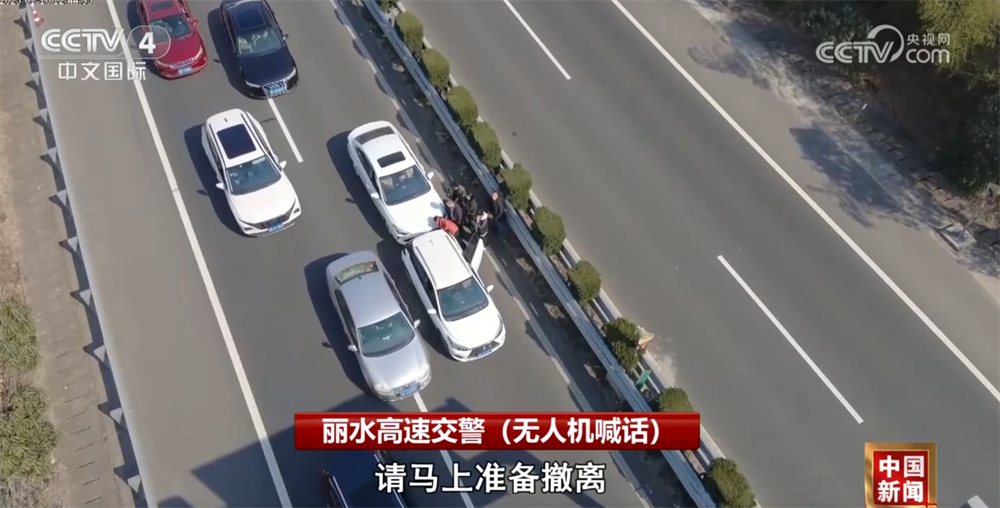 Lishui Expressway Traffic Police (drone calls): "We are Lishui Expressway Traffic Police. Please prepare to evacuate the two cars that have occurred. The cloud and exit ahead will deal with you. The door is closed, but the door has not been closed yet."
