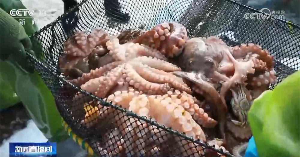 In the octopus breeding area of Shaao Bay, fishing boats of all sizes shuttled back and forth at sea. As the fishing nets tightened, groups of octopus surfaced, and fishermen poured them into live water boats and transported them to dock markets in various places.