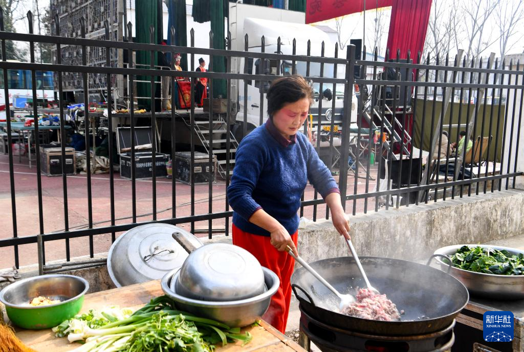 On January 21, in Dachi Village, Shilin Town, Dengzhou City, Henan Province, Wanbang Opera Troupe actor Yang Yujie started cooking after the performance.