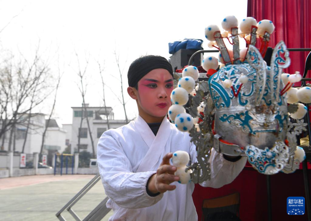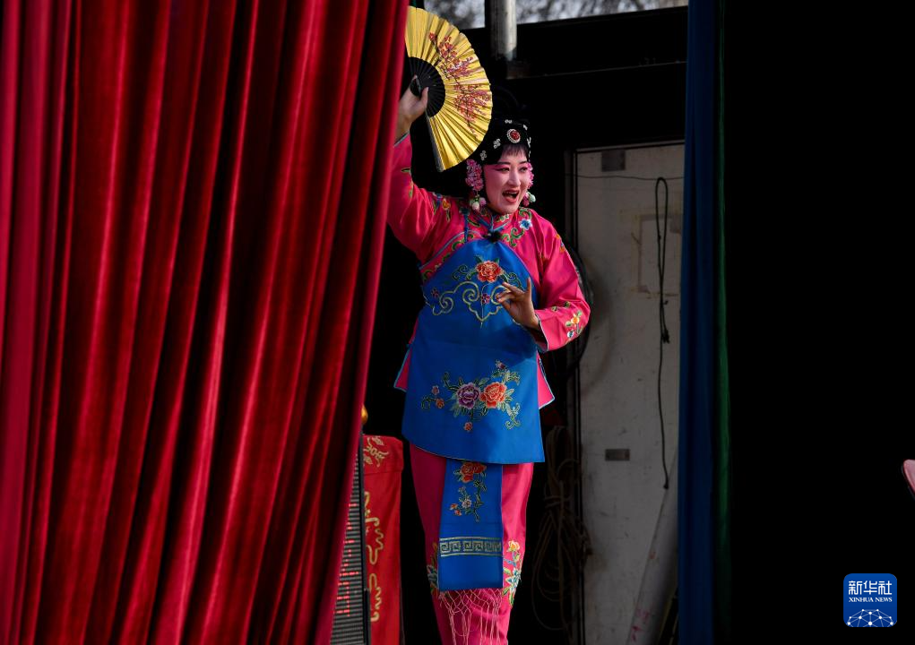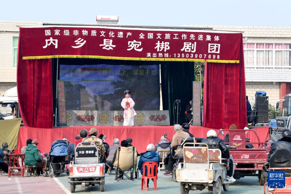 On January 21, in Dachi Village, Shilin Town, Dengzhou City, Henan Province, actors from Wanbang Opera Troupe performed on the stage.