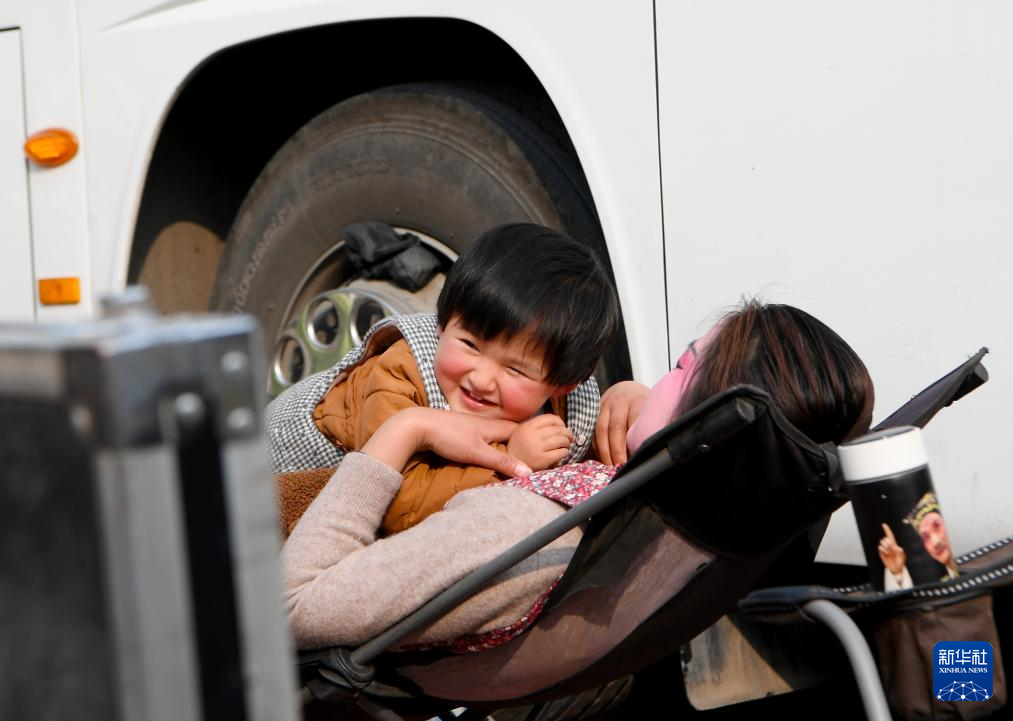 On January 21, in Dachi Village, Shilin Town, Dengzhou City, Henan Province, Wanbang Opera Troupe actor Ji Zhenzhu was playing with his daughter.