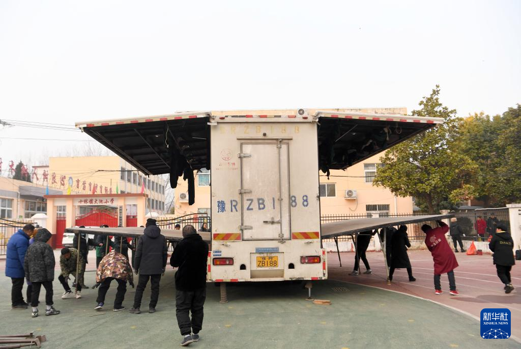 On January 21, in Dachi Village, Shilin Town, Dengzhou City, Henan Province, actors of the Wanbang Opera Troupe were building a stage.