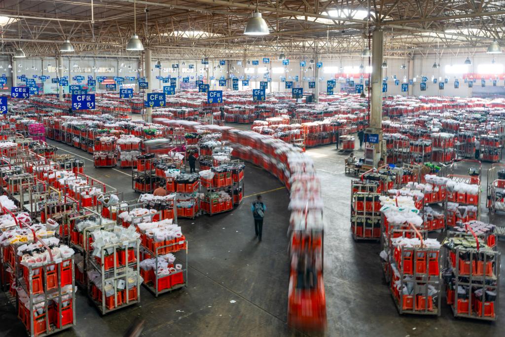 On January 22, Trolley transported flowers in Kunming International Flower Auction Trading Center. Photo by Xinhua News Agency reporter Chen Xinbo