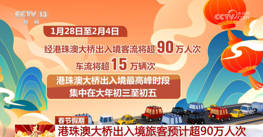 CCTV News: According to the forecast of the Hong Kong-Zhuhai-Macao Bridge Border Inspection Station of the Zhuhai-Zhuhai-Macao Bridge, the Hong Kong-Zhuhai-Macao Bridge will usher in a new peak in the inbound and outbound passenger flow in the past three years. From New Year's Eve to the seventh day of the first lunar month, from January 28 to February 4, the inbound and outbound passenger flow through the Hong Kong-Zhuhai-Macao Bridge will exceed 900,000 passengers and more than 150,000 vehicles. The peak period of entry and exit will be concentrated between the third to the fifth day of the Chinese New Year. The maximum inbound and exit passenger flow in a single day is expected to reach 140,000 passengers, and the maximum inbound and exit vehicle flow in a single day will reach 22,000 vehicles.
