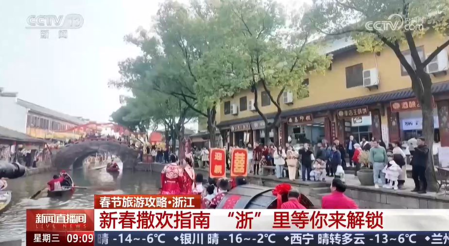 CCTV News: What else is fun in Zhejiang? The "Spring Festival Travel Guide" we have prepared for you. Zhejiang's five treasure landmarks have been arranged: there are the beautiful scenery of West Lake with flowers blooming, the water market in Wuzhen, and the Song Dynasty Lantern Festival that dreams of thousands of years. Whether you are a literary style, food control, or a Chinese style enthusiast, this guide can satisfy you!