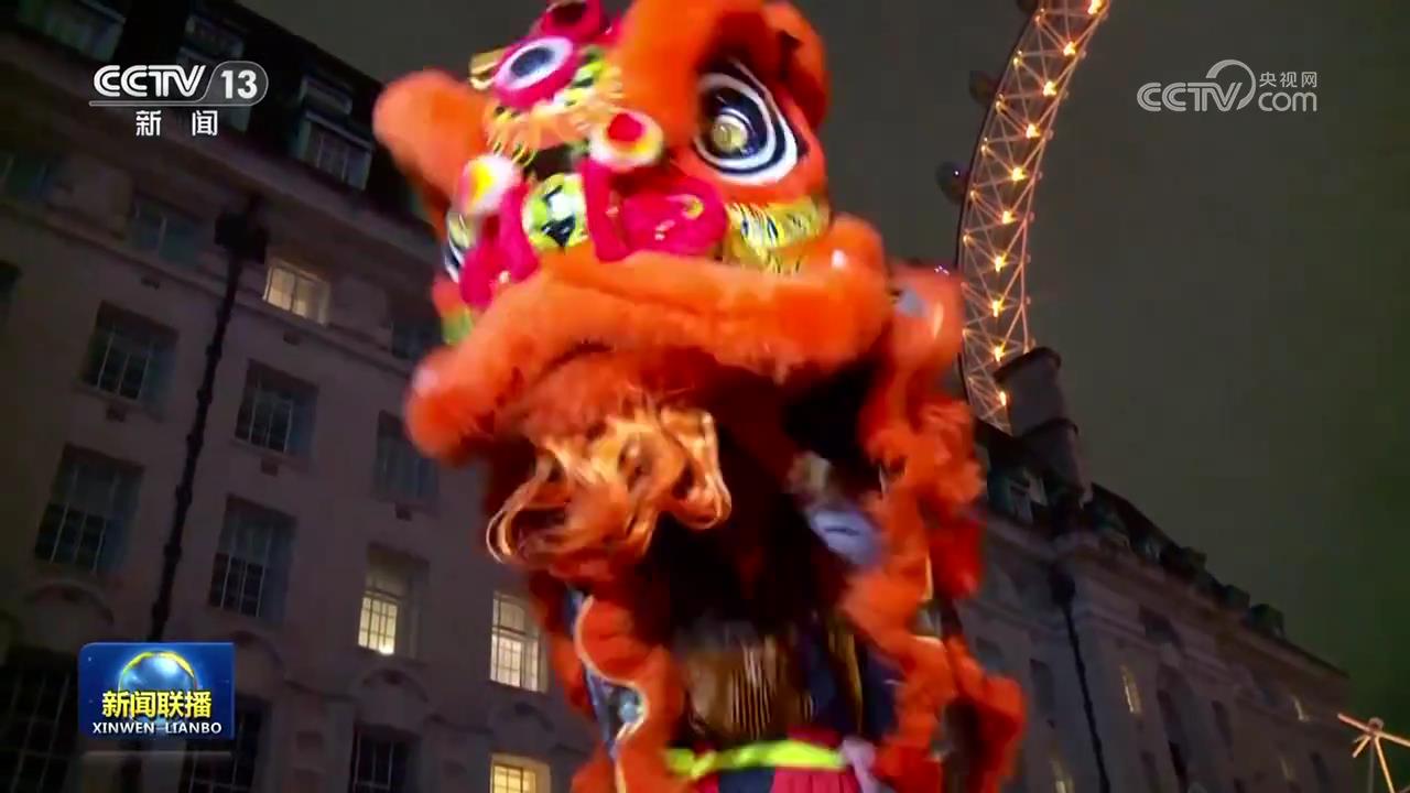 The giant Ferris wheel "London Eye" lit up red and golden lights on New Year's Eve to celebrate the New Year of the Snake. A wonderful dragon and lion dance performance was also held near the "London Eye". The scene was filled with gongs and drums, and the atmosphere was strong.